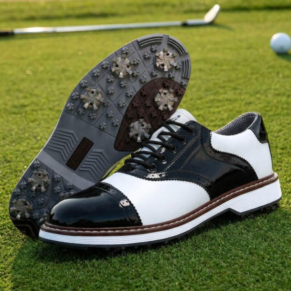 高爾夫球鞋男女防水運動下場訓練球鞋防側滑無釘GOLF運動風休閒鞋久站舒適不累腳防滑慢跑鞋圓頭耐磨懶人鞋個性新潮旋轉紐扣鞋大尺碼專業帶釘高爾夫球鞋