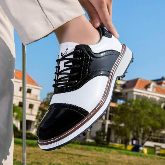 高爾夫球鞋男女防水運動下場訓練球鞋防側滑無釘GOLF運動風休閒鞋久站舒適不累腳防滑慢跑鞋圓頭耐磨懶人鞋個性新潮旋轉紐扣鞋大尺碼專業帶釘高爾夫球鞋