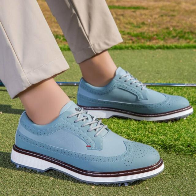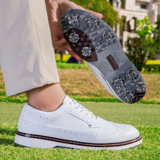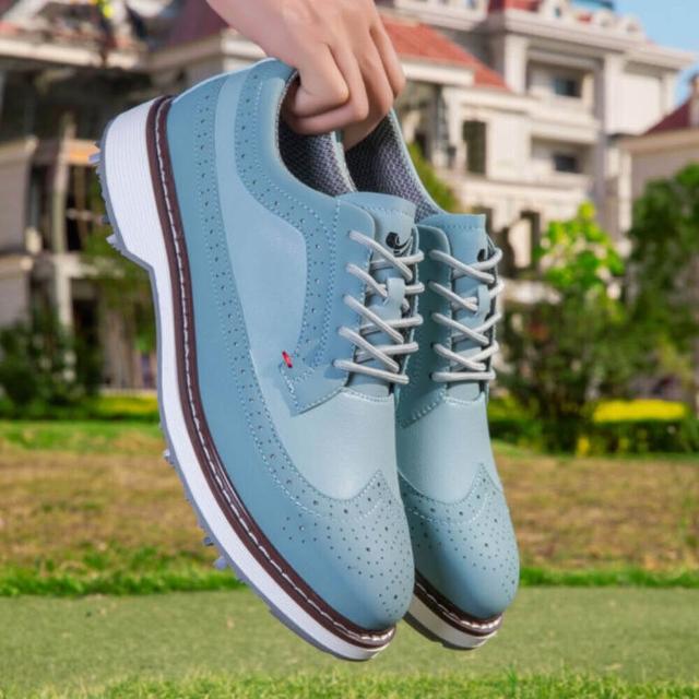 新款專業帶釘休閑商務高爾夫球鞋男女防水運動下場訓練球鞋防側滑無釘GOLF運動風休閒鞋久站舒適不累腳防滑慢跑鞋圓頭耐磨懶人鞋個性新潮旋轉紐扣鞋