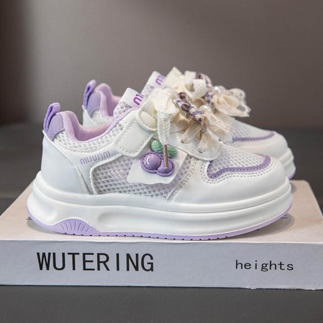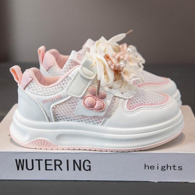 女童單網運動板鞋26-37兒童運動鞋女厚底防滑小白鞋中大童輕便透氣舒適健走鞋女生休閒童鞋韓國寛楦平底板鞋戶外久站止滑登山鞋大尺碼增高魔鬼氈懶人鞋子