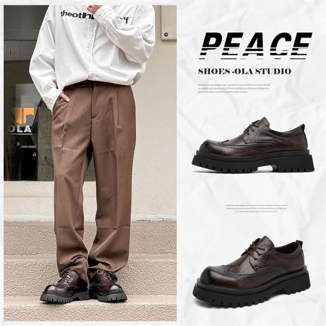 爆款布洛克男士商務正裝休閑皮鞋新郎結婚鞋大尺碼增高男鞋皮鞋男春秋新款黑色透氣英倫風商務正裝大頭潮流低幫馬丁靴厚底休閑皮男鞋休閒皮鞋圓頭寬楦增高輕便平底鞋吸濕透氣一腳蹬鞋跟鞋