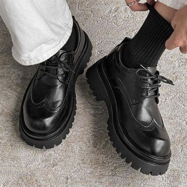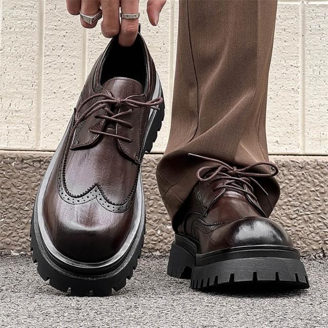 爆款布洛克男士商務正裝休閑皮鞋新郎結婚鞋大尺碼增高男鞋皮鞋男春秋新款黑色透氣英倫風商務正裝大頭潮流低幫馬丁靴厚底休閑皮男鞋休閒皮鞋圓頭寬楦增高輕便平底鞋吸濕透氣一腳蹬鞋跟鞋