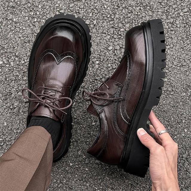 爆款布洛克男士商務正裝休閑皮鞋新郎結婚鞋大尺碼增高男鞋皮鞋男春秋新款黑色透氣英倫風商務正裝大頭潮流低幫馬丁靴厚底休閑皮男鞋休閒皮鞋圓頭寬楦增高輕便平底鞋吸濕透氣一腳蹬鞋跟鞋
