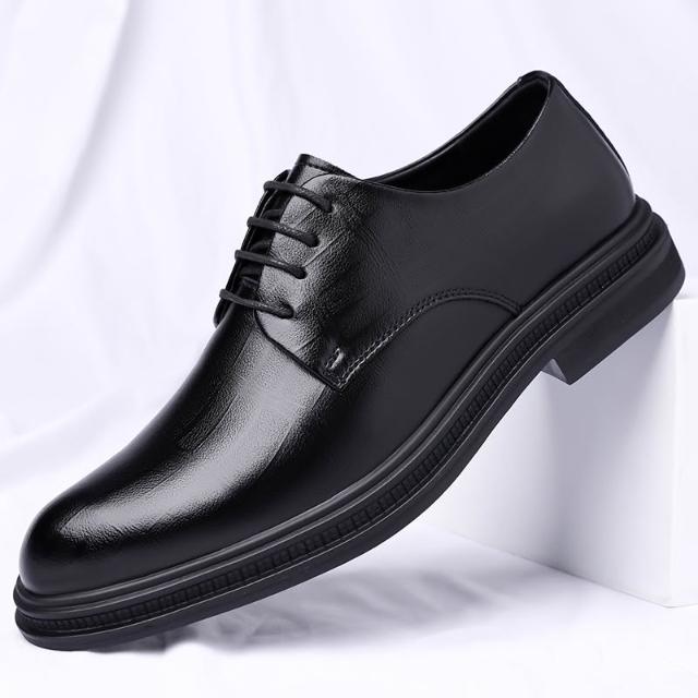 大尺碼男士正裝商務皮鞋皮鞋男春秋新款黑色透氣英倫風商務正裝大頭潮流低幫馬丁靴厚底休閑皮男鞋休閒皮鞋圓頭寬楦增高輕便平底鞋吸濕透氣一腳蹬鞋跟鞋