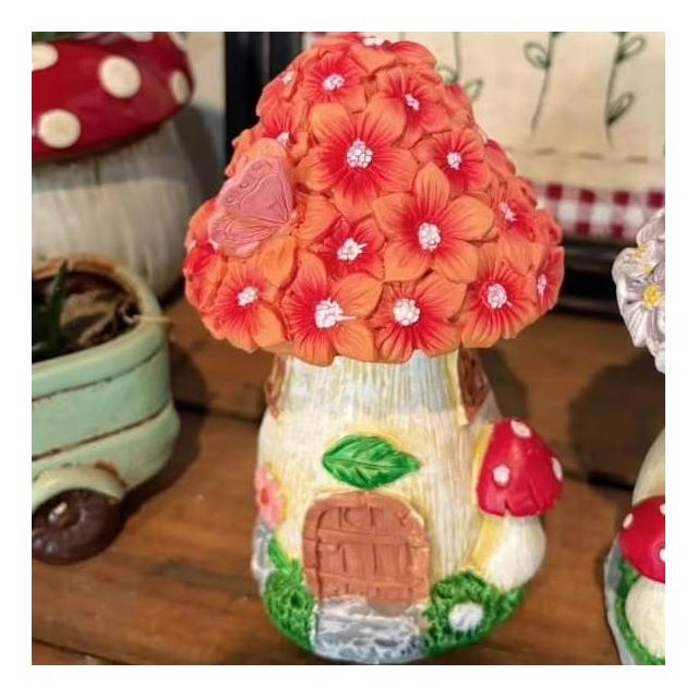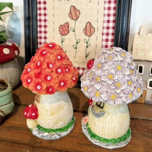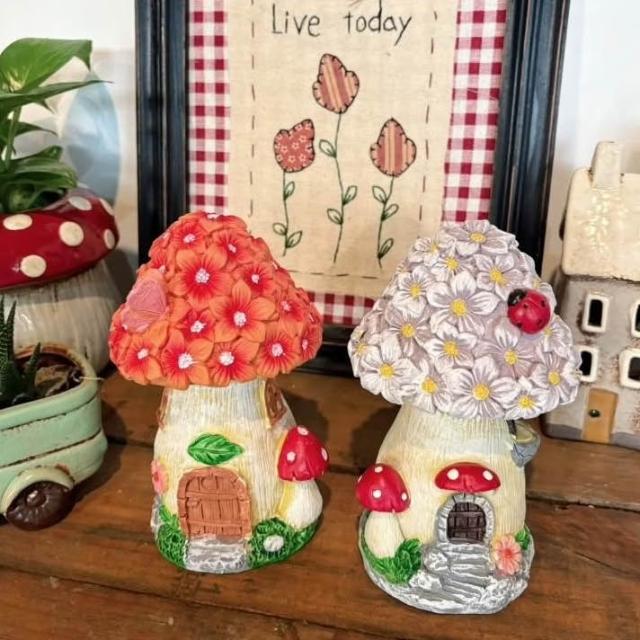 鄉村花花樹脂蘑菇 園藝擺飾 蘑菇屋 樹脂擺飾 鄉村風