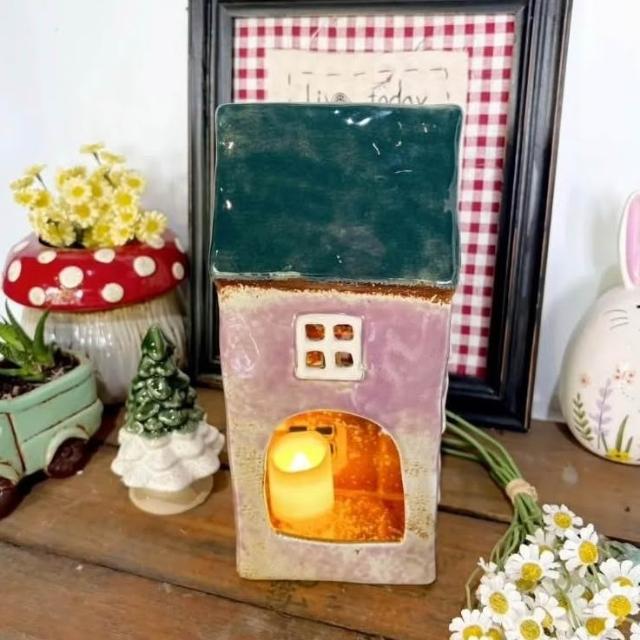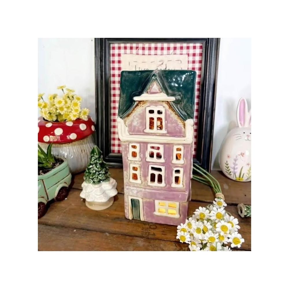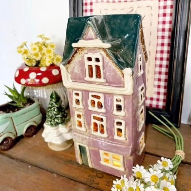 繪木屋家飾薰衣草紫大樓 丹麥燭台小屋 陶瓷房屋 高溫陶瓷 鄉村房屋 園藝擺飾 陶瓷擺飾 居家佈置 蠟燭座