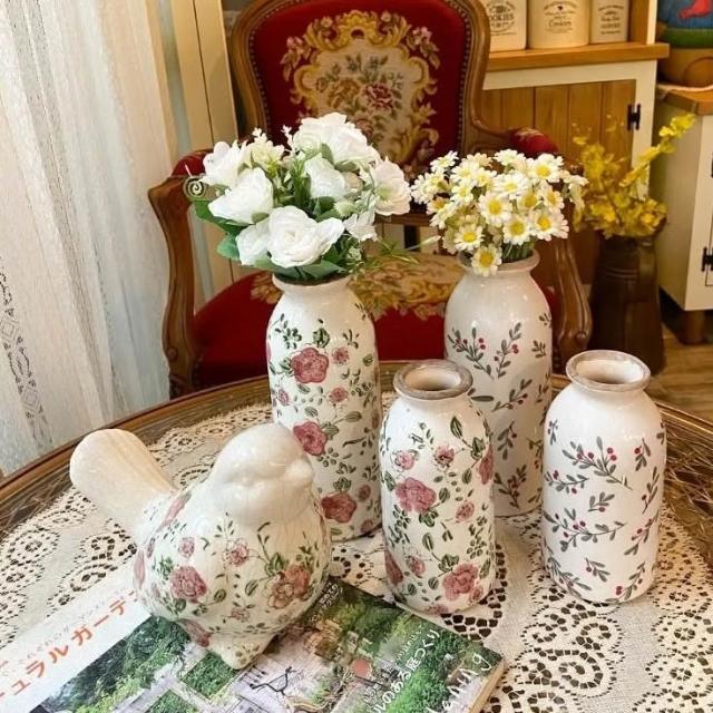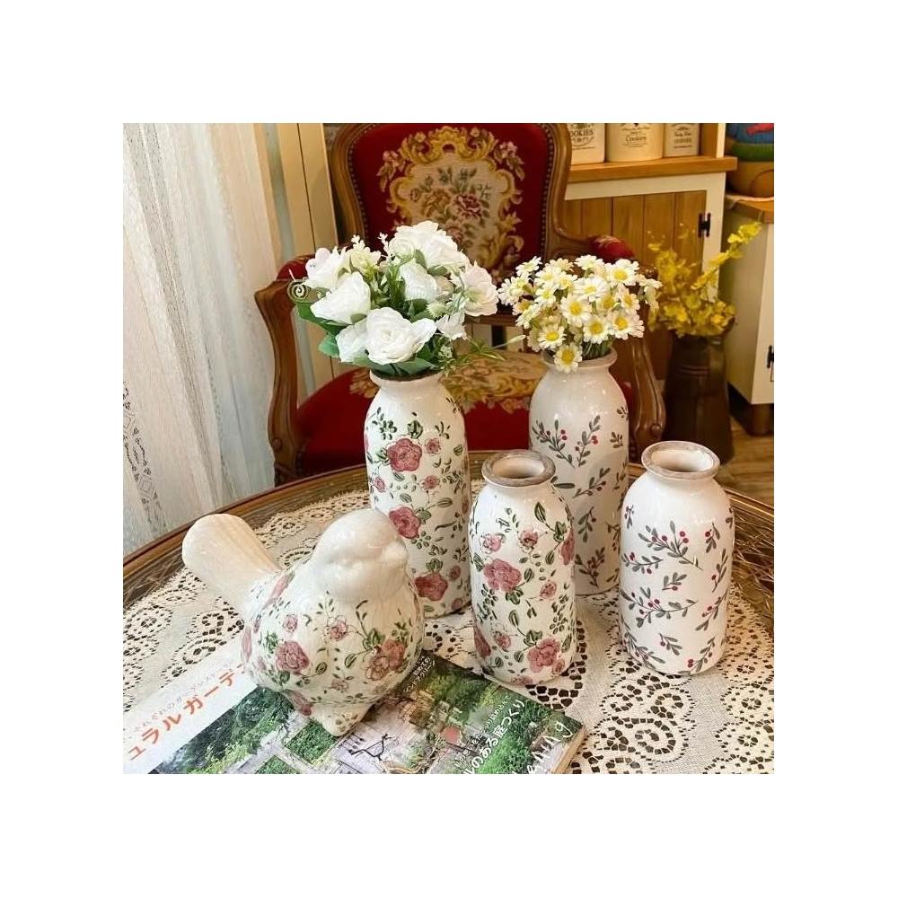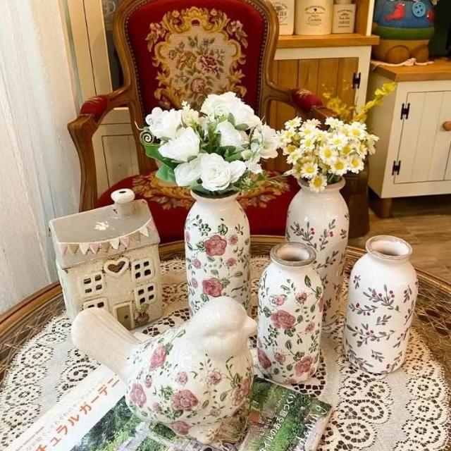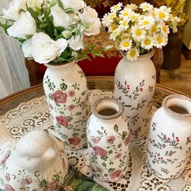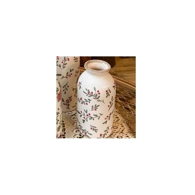 復古陶瓷紅色梅花/小紅果牛奶花瓶 陶瓷花器 花瓶花器 園藝擺飾 陶瓷擺飾 居家佈置