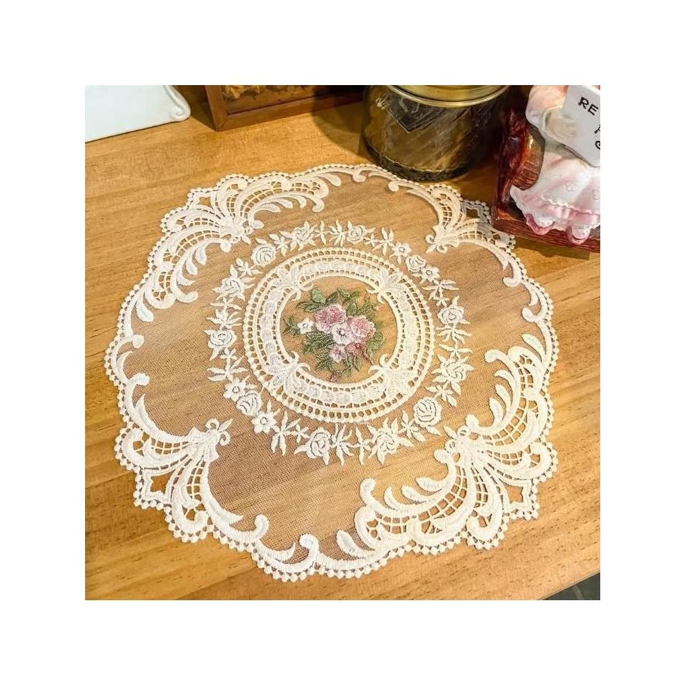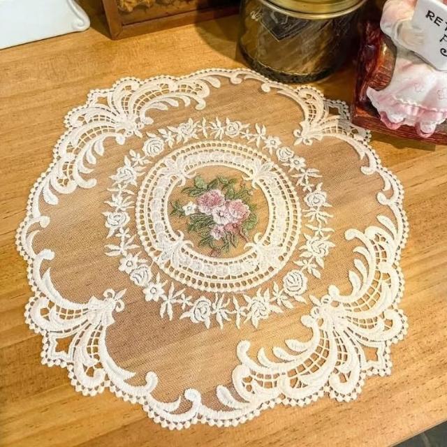 鄉村風古典玫瑰圓形蕾絲桌墊 居家佈置 蕾絲製品 桌墊
