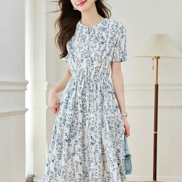 藍瓷印象薄棉碎花洋裝(C-18-07)