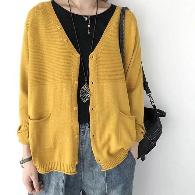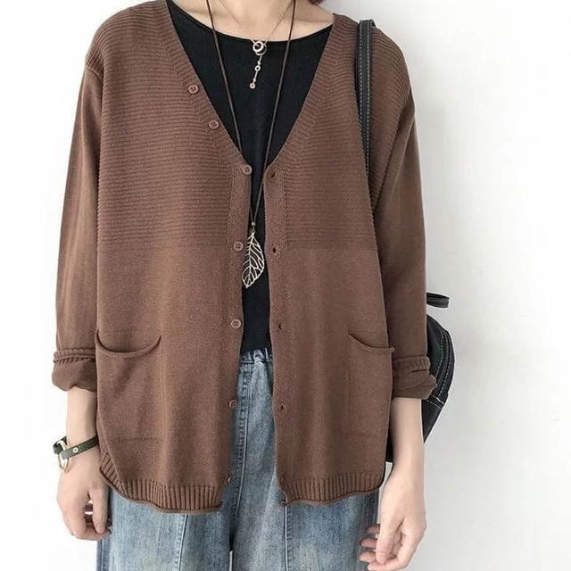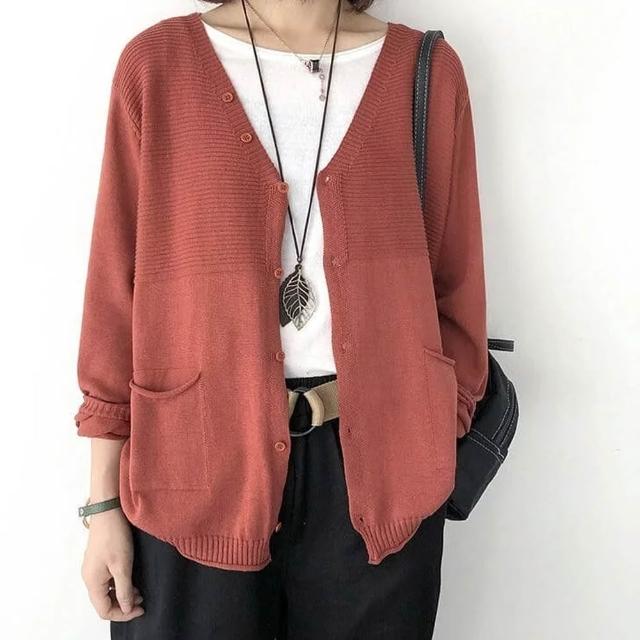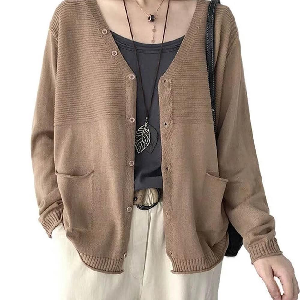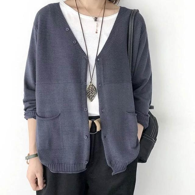 單排釦V領針織薄款開衫外套