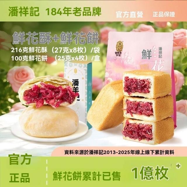 熱賣中潘祥記玫瑰酥鮮花餅216g普洱茶玫瑰夾心糕點早餐零食禮袋