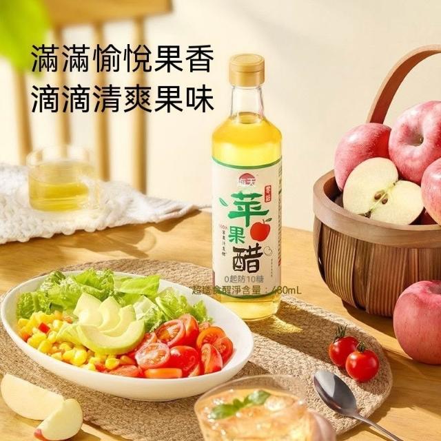 熱賣中【3瓶裝】海天零糖蘋果醋480ml瓶裝果醋0糖兌飲涼拌輕食沙拉調飲