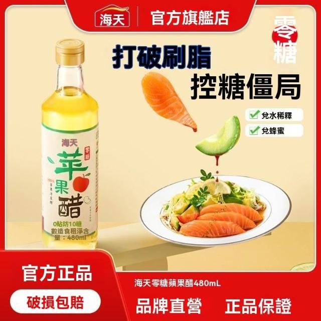 熱賣中【3瓶裝】海天零糖蘋果醋480ml瓶裝果醋0糖兌飲涼拌輕食沙拉調飲