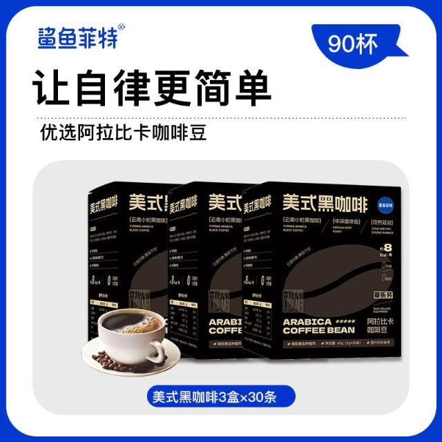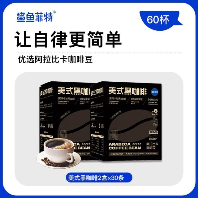 熱賣中 鯊魚菲特黑咖啡0脂肪0蔗糖60g速溶美小粒咖啡粉醇香量販裝