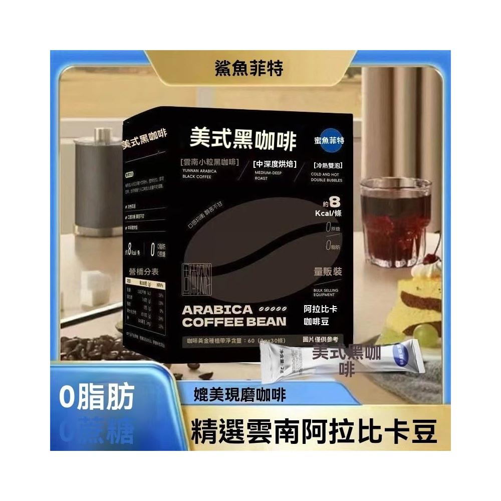 熱賣中 鯊魚菲特黑咖啡0脂肪0蔗糖60g速溶美小粒咖啡粉醇香量販裝