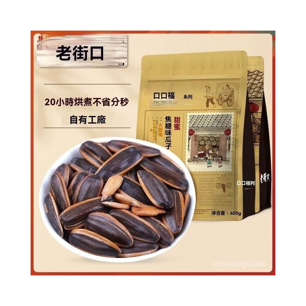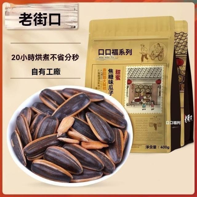 熱賣中 老街口 焦糖/五香味瓜子400g*2袋大顆粒葵花籽炒貨堅果2025新貨