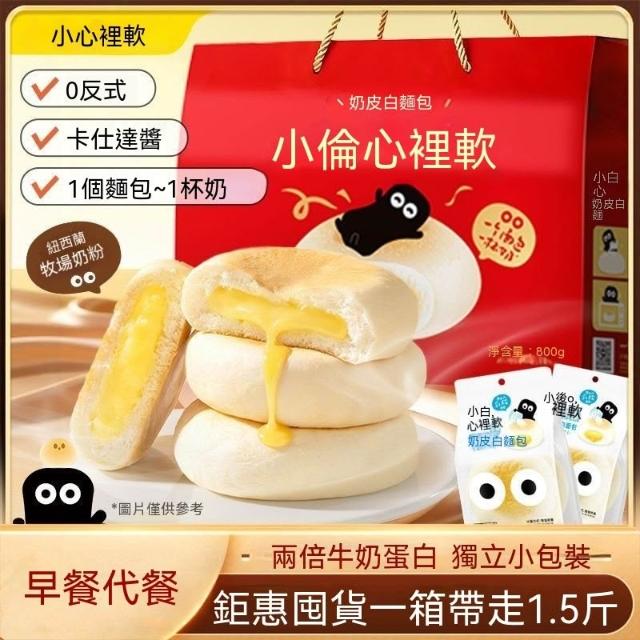 熱賣中珍軒品小白心裡軟奶皮白麵包禮盒800g手提夾心蛋糕學生早餐休閒零食