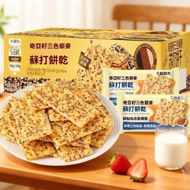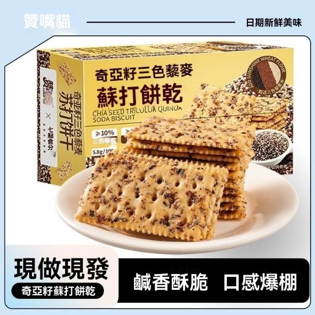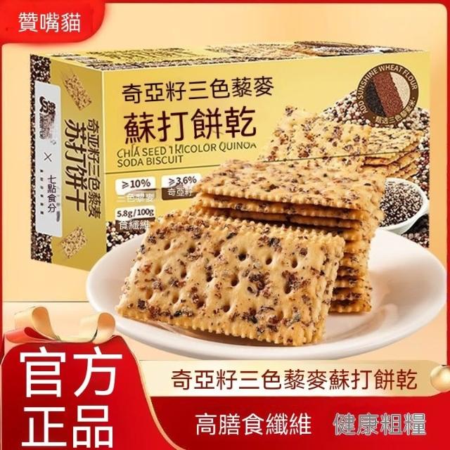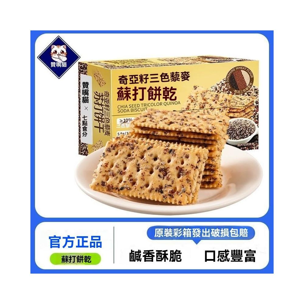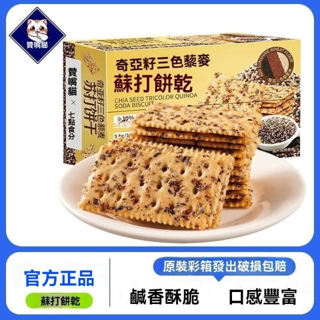 熱賣中贊嘴貓奇亞籽三色藜麥蘇打餅乾200g鹹味抗餓飽腹無蔗糖解饞小零食