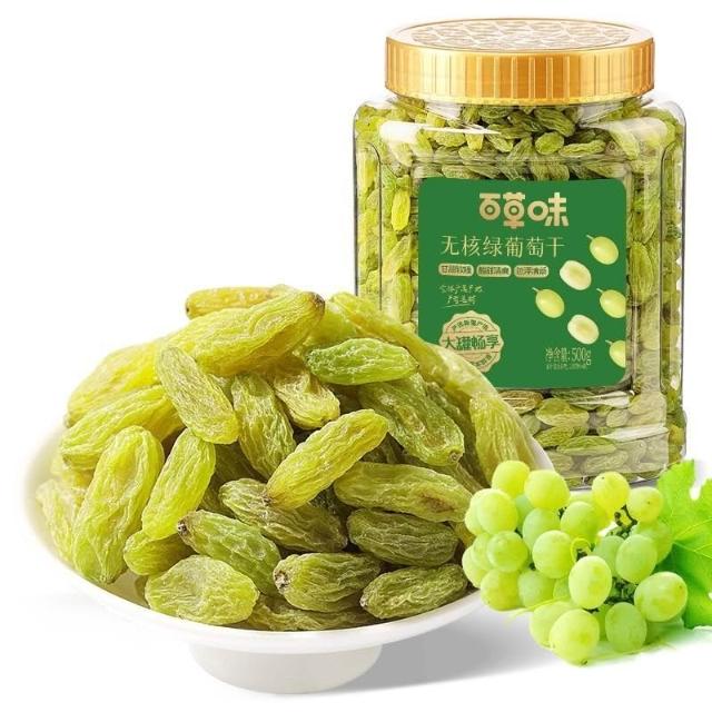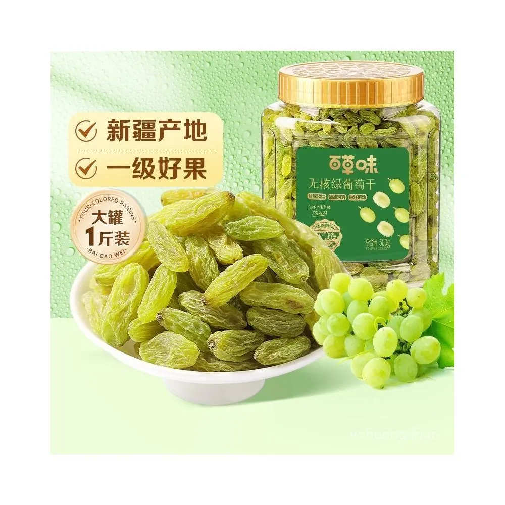熱賣中【明明甄選】百草味無核綠葡萄幹500g罐裝新疆特産免洗一級大果幹零食蜜餞休閒