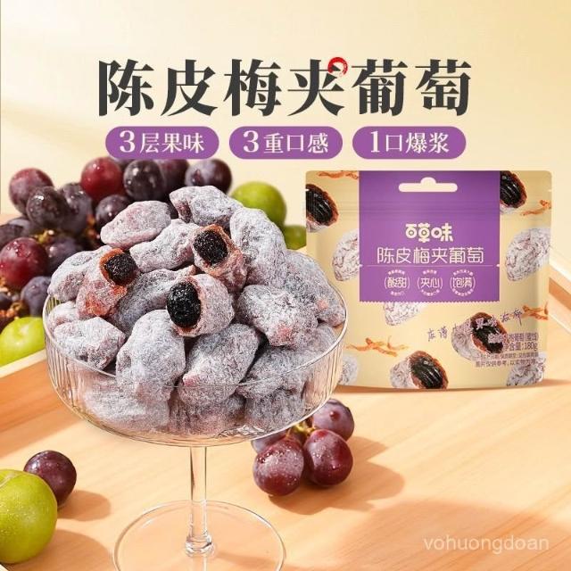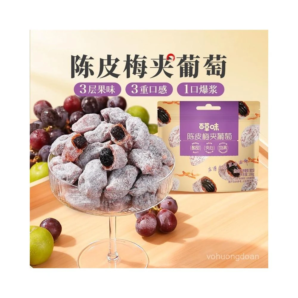熱賣中林林精選 百草味陳皮梅子抱葡萄180g*1/2陳皮梅有葡萄痠甜爆漿果幹蜜餞梅子