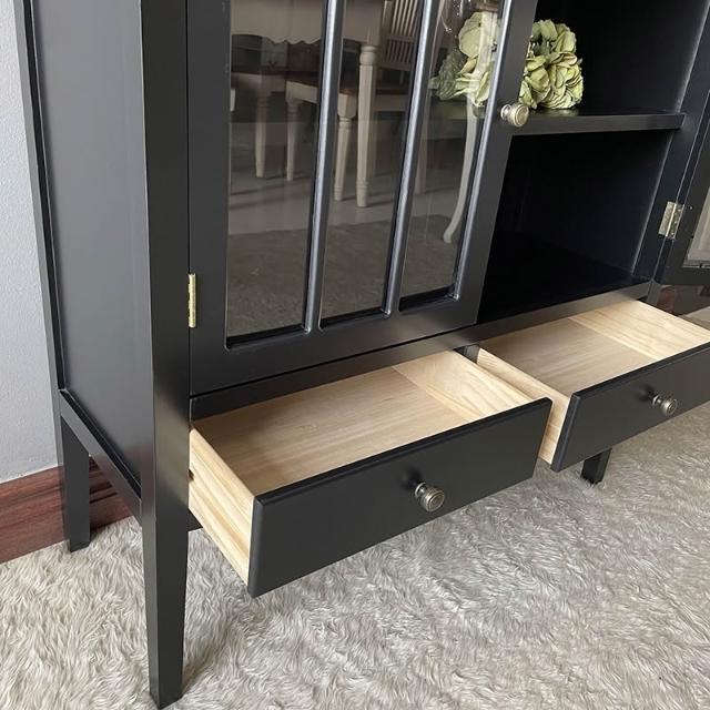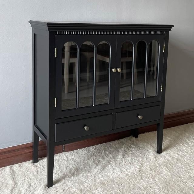 輕奢黑色陳列櫃ins置物櫃木整裝餐邊櫃櫥櫃隔斷櫃嗎歐美式傢具