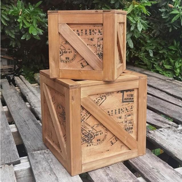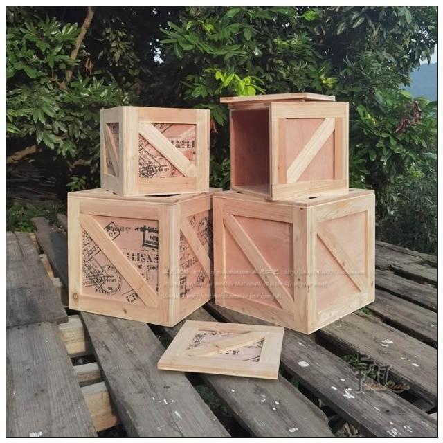復古工業風木箱正方形收納箱木製有蓋裝飾儲物展示箱可坐人陳列箱