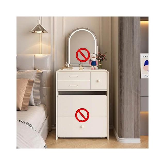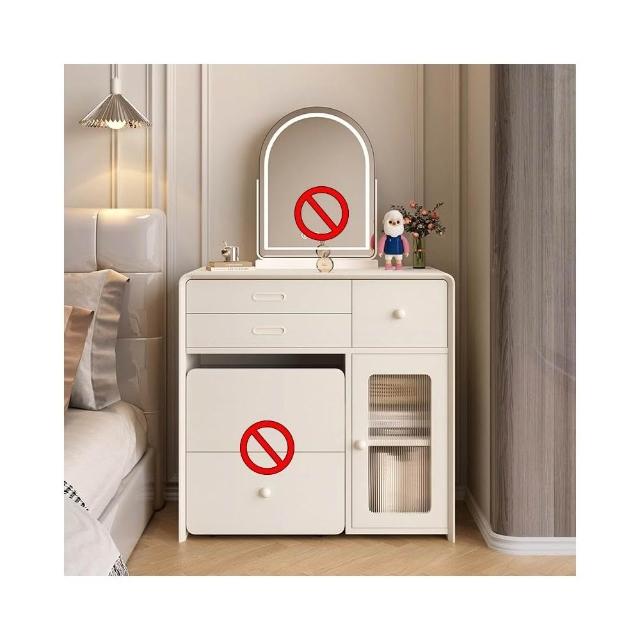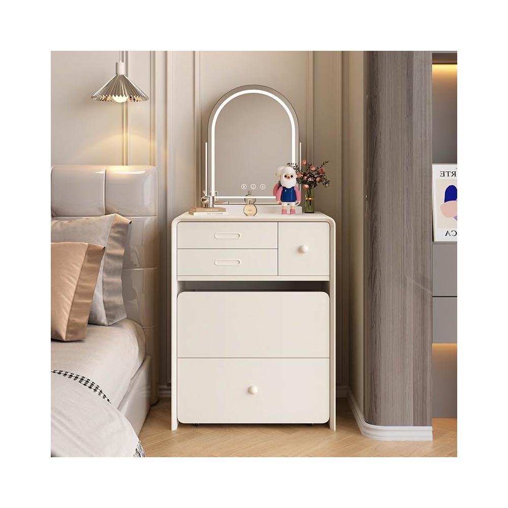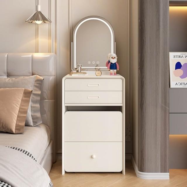 法式奶油風小型梳妝台小戶型卧室迷你化妝桌收納櫃一體60cm化妝台