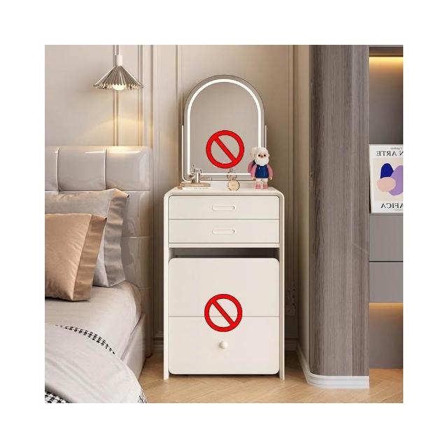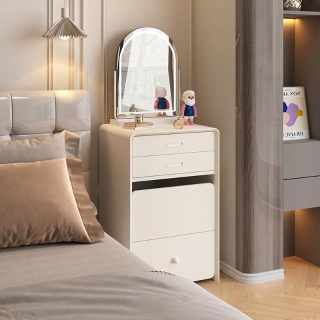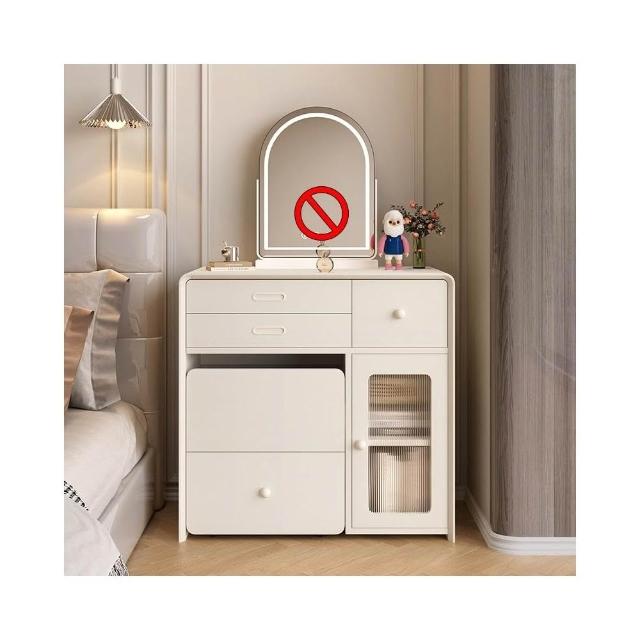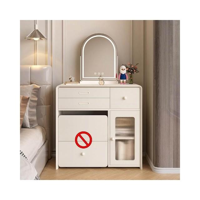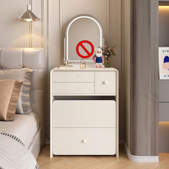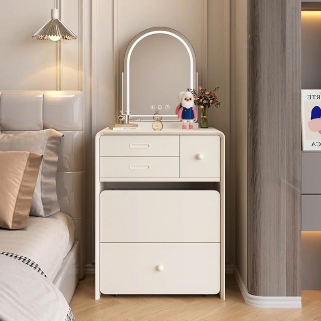 法式奶油風小型梳妝台小戶型卧室迷你化妝桌收納櫃一體60cm化妝台