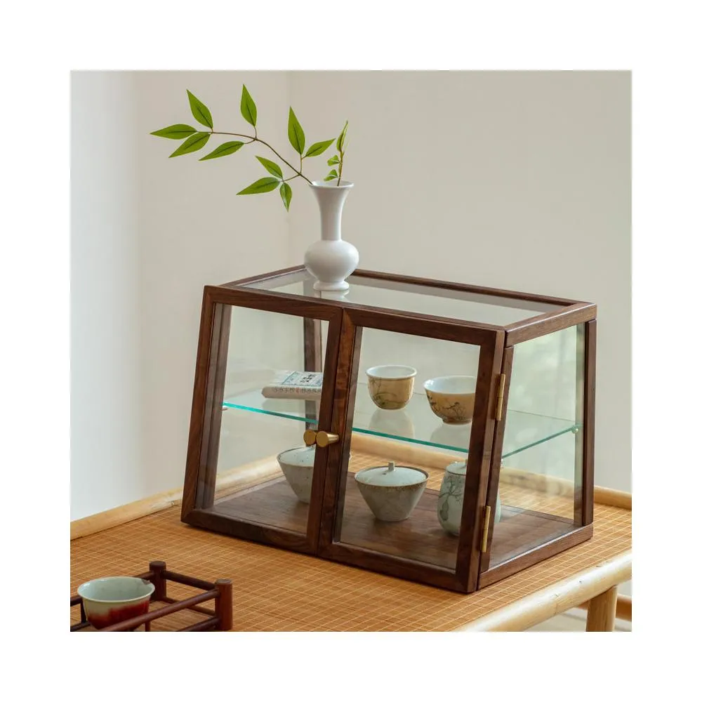 咖啡廳展示櫃玻璃茶具收納櫃黑胡桃木桌面實木柜子置物架杯具茶器櫃