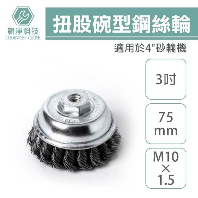 扭股碗型鋼絲輪 3" M10*1.5 鋼絲輪 砂輪機 鋼刷 除鏽刷