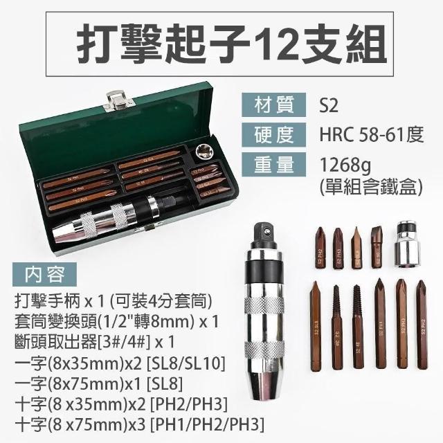 打擊起子組 7件組/12件組 鐵盒裝 CR-V S2 十字 一字 沖擊起子 衝擊起子 敲擊起子 滑牙救星 反牙螺絲攻