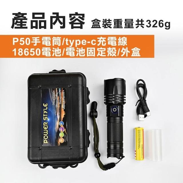 P50強光手電筒 鋁合金 伸縮變焦 露營燈 Type-C USB充電手電筒 LED手電筒