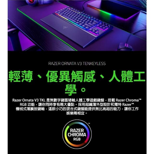 Razer 雷蛇Razer 雷蛇 ORNATA V3 TENKEYLESS 雷蛇 雨林狼蛛 V3 TKL 機械式薄膜混合 電競鍵盤