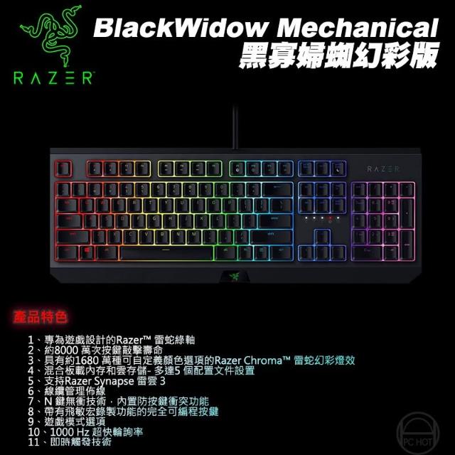 Razer 雷蛇 BlackWidow 黑寡婦蜘蛛系列 電競鍵盤 中文 英文 有線鍵盤 無線鍵盤 藍芽鍵盤 機械鍵盤