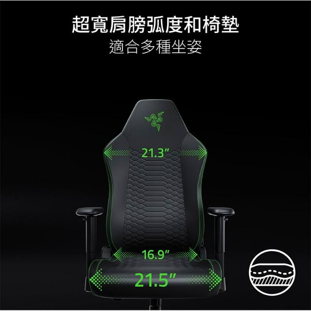 Razer 雷蛇Razer Iskur V2 X NewGen 電競椅 黑綠 抗剝落材質 內建腰部支撐 散熱泡棉坐墊 電腦椅 辦公椅