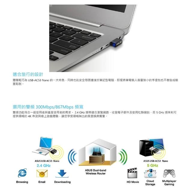 ASUS 華碩ASUS 華碩 USB-AC53 Nano 無線網卡 5GHz 867Mbps 雙頻 網卡 網路接收器 wifi 接收器
