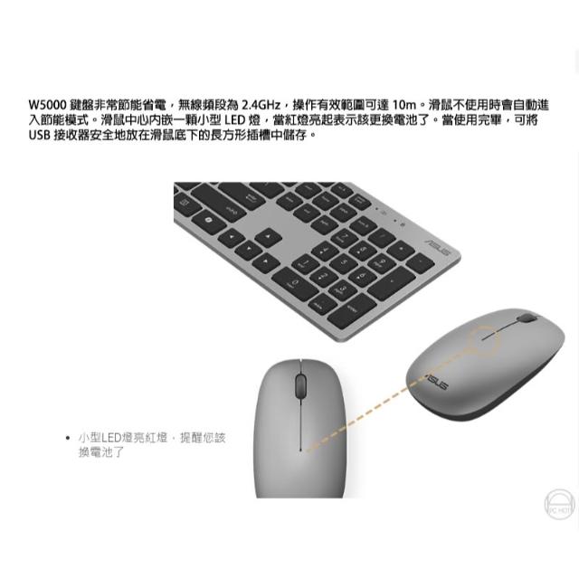 ASUS 華碩ASUS 華碩 W5000 無線鍵盤滑鼠組 輕薄耐用 13個專用快速鍵 滑鼠 靜音滑鼠 無線滑鼠 鍵盤 無線鍵盤