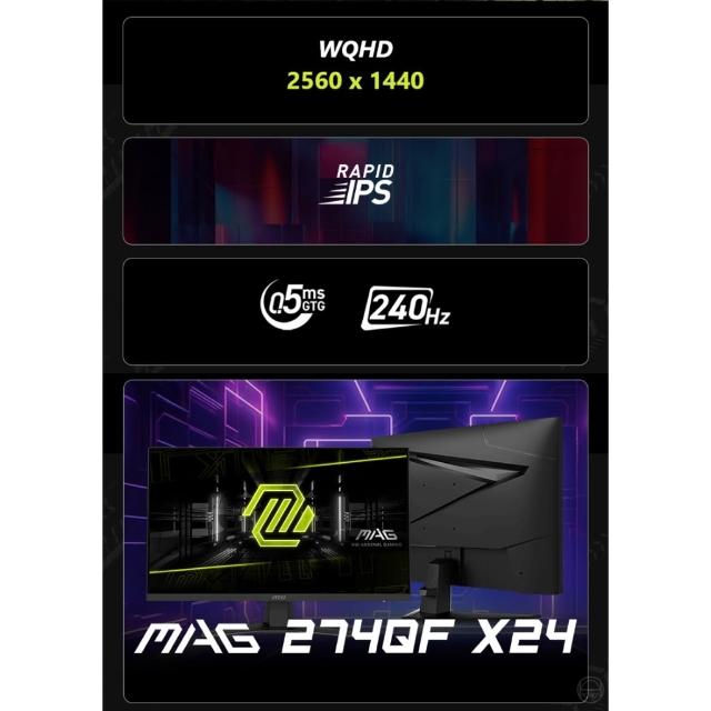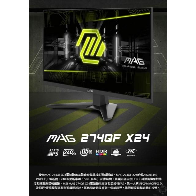 MSI 微星MSI 微星 MAG 274QF X24 電競螢幕 27吋 240Hz WQHD 0.5ms HDR 電腦螢幕 遊戲螢幕