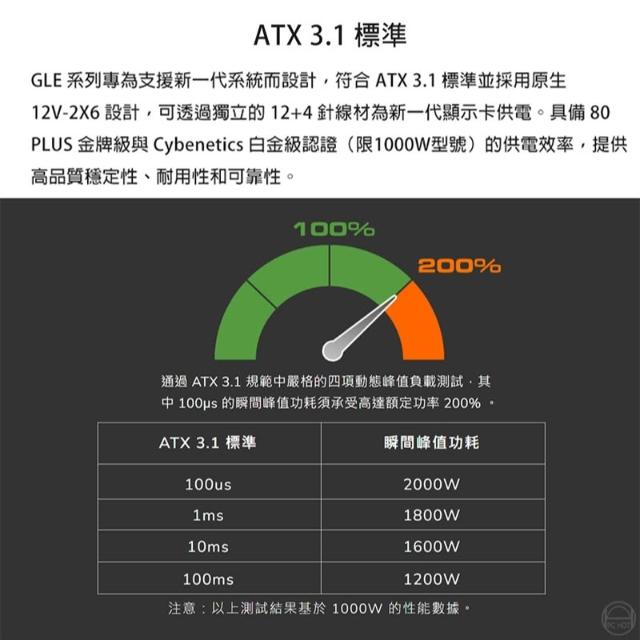 COUGAR 美洲獅Cougar 美洲獅 GLE 電源供應器 金牌 80Plus ATX 3.1 PCIe Gen 5.1 金牌電源 全模組