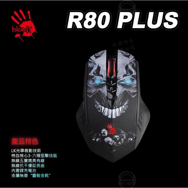 A4 Bloody 雙飛燕Bloody 血手幽靈 R80 無線 終結者 電競滑鼠 送軟體 4000dpi 光微動 8個自編程按鍵 無線滑鼠
