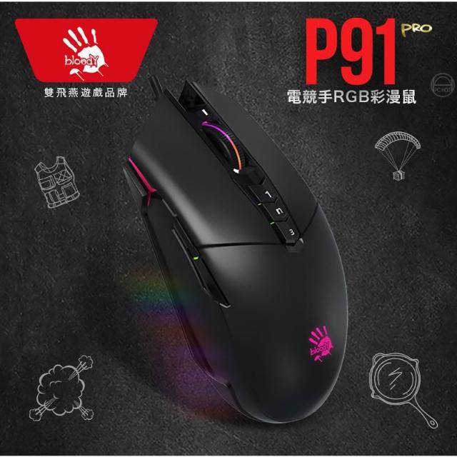 A4 Bloody 雙飛燕Bloody 血手幽靈 P91 PRO 電競滑鼠 送軟體 16000dpi 光微動 遊戲滑鼠 有線滑鼠