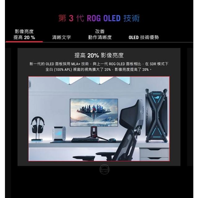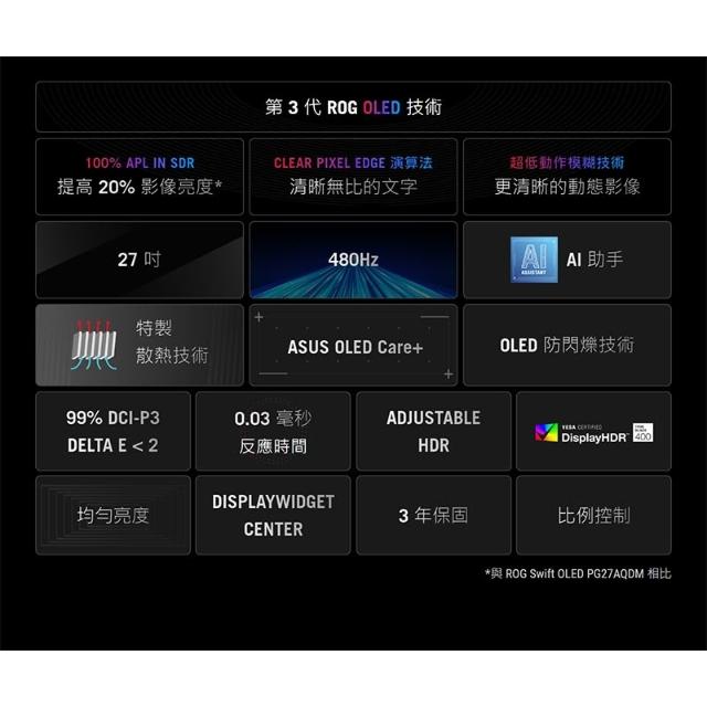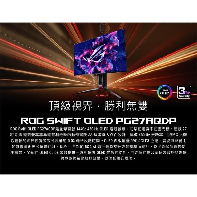ASUS 華碩ROG Swift OLED PG27AQDP 電競螢幕 27吋 480Hz 0.03ms 2K 可旋轉 HDR