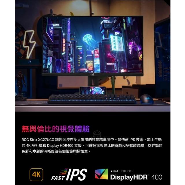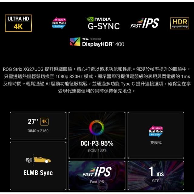ASUS 華碩ROG Strix XG27UCG LCD 電競螢幕 27吋 Fast IPS 320Hz 1ms AI驅動 HDR