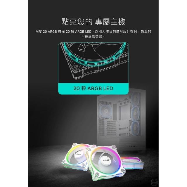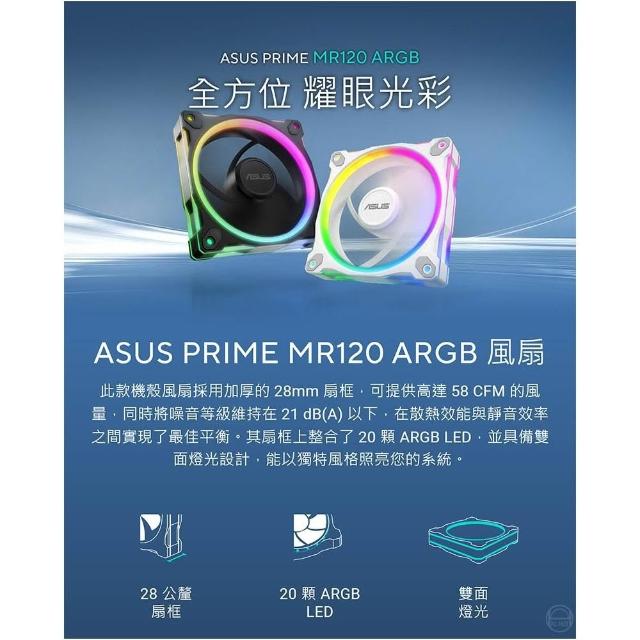 ASUS 華碩ASUS 華碩 Prime MR120 ARGB 機殼風扇 黑色 正向 反向 加厚扇框 雙側框架燈效 風扇 電腦風扇