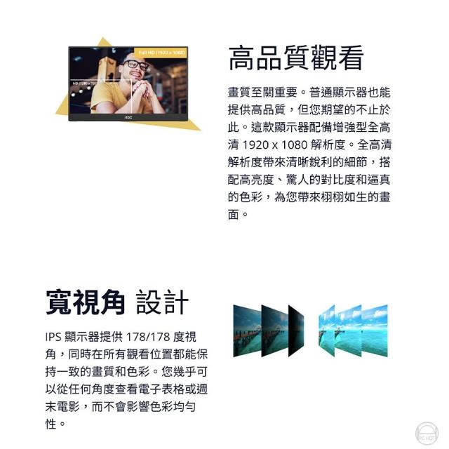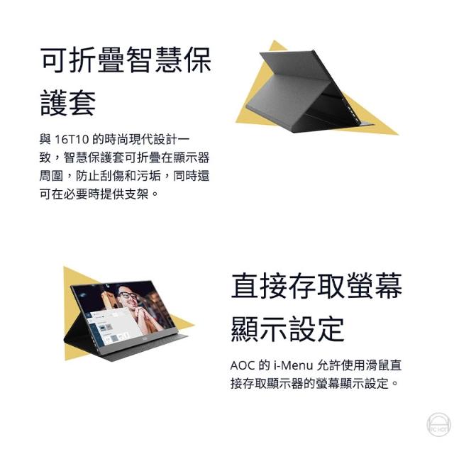 AOCAOC 16T20 便攜式顯示器 15.6吋 60Hz FHD USB-C 電腦螢幕 可攜式螢幕 遊戲螢幕 液晶螢幕