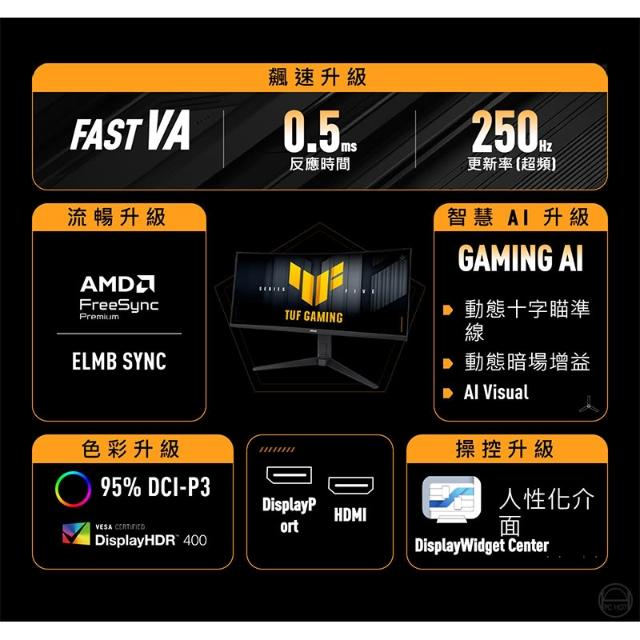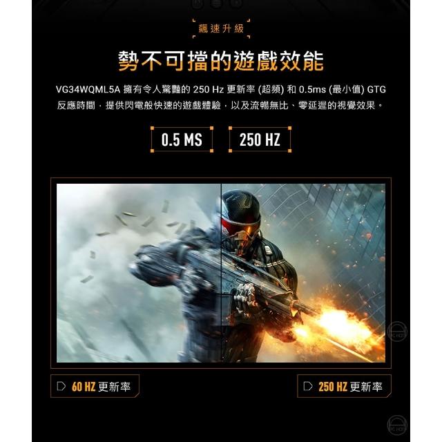 ASUS 華碩ASUS 華碩 TUF Gaming VG34WQML5A 曲面電競螢幕 34吋 250Hz 2K 0.5ms 內建喇叭