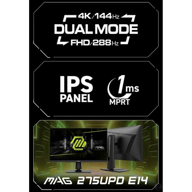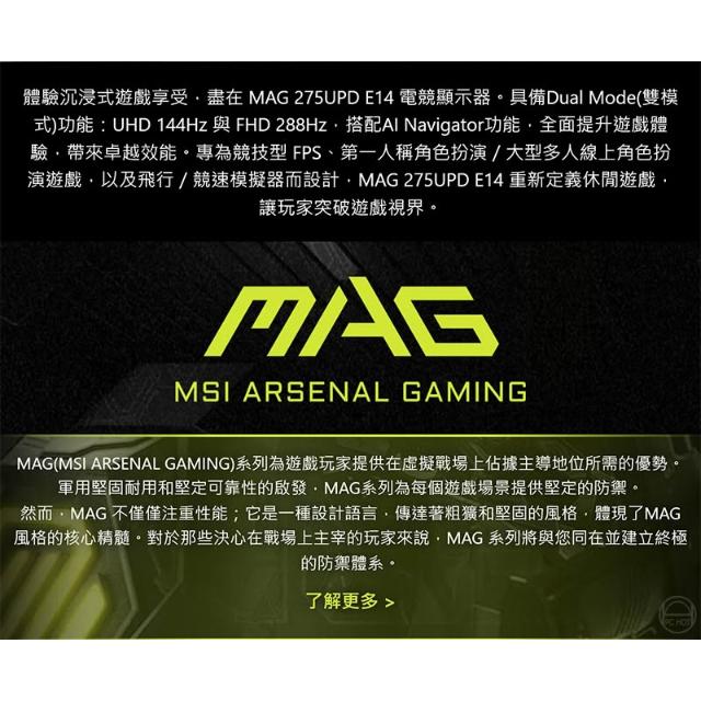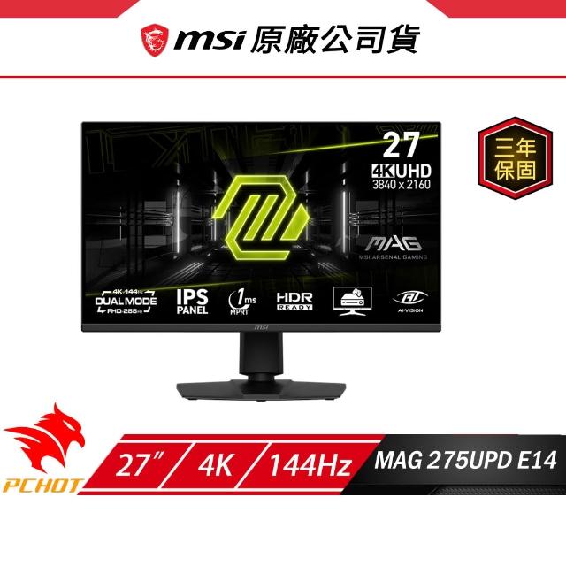MSI 微星MSI 微星 MAG 275UPD E14 電競螢幕 27吋 144Hz 4k 1ms 內建喇叭 電腦螢幕 遊戲螢幕