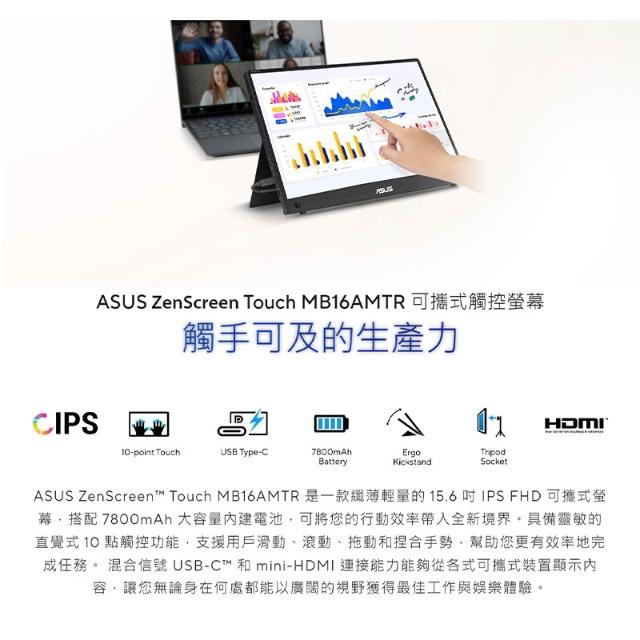 ASUS 華碩ZenScreen MB16AMTR 可攜式觸控螢幕(15.6吋 IPS 60Hz 5ms FHD 藍光濾鏡 內建喇叭