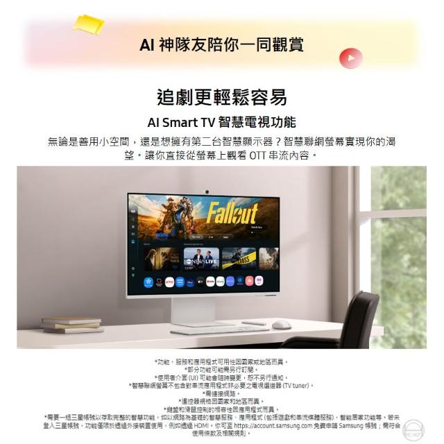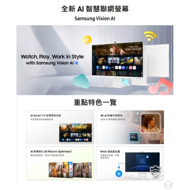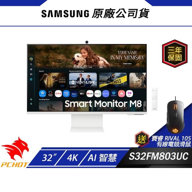 Samsung 三星SAMSUNG 三星 S32FM803UC 電腦螢幕 32吋 60Hz 4k 4ms 內建喇叭 可旋轉 白色螢幕