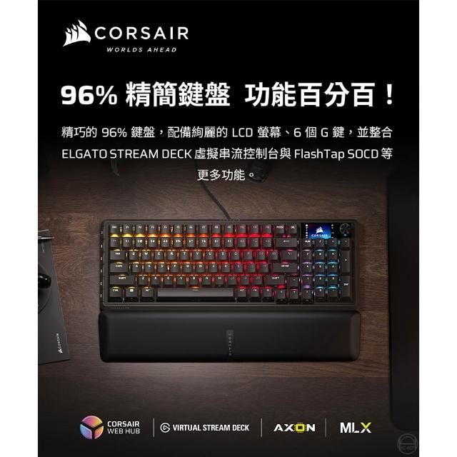 CORSAIR 海盜船Corsair 海盜船 VANGUARD 先鋒者 電競鍵盤 黑色中文 黃軸 8k輪詢率 LCD螢幕 機械鍵盤 有線鍵盤